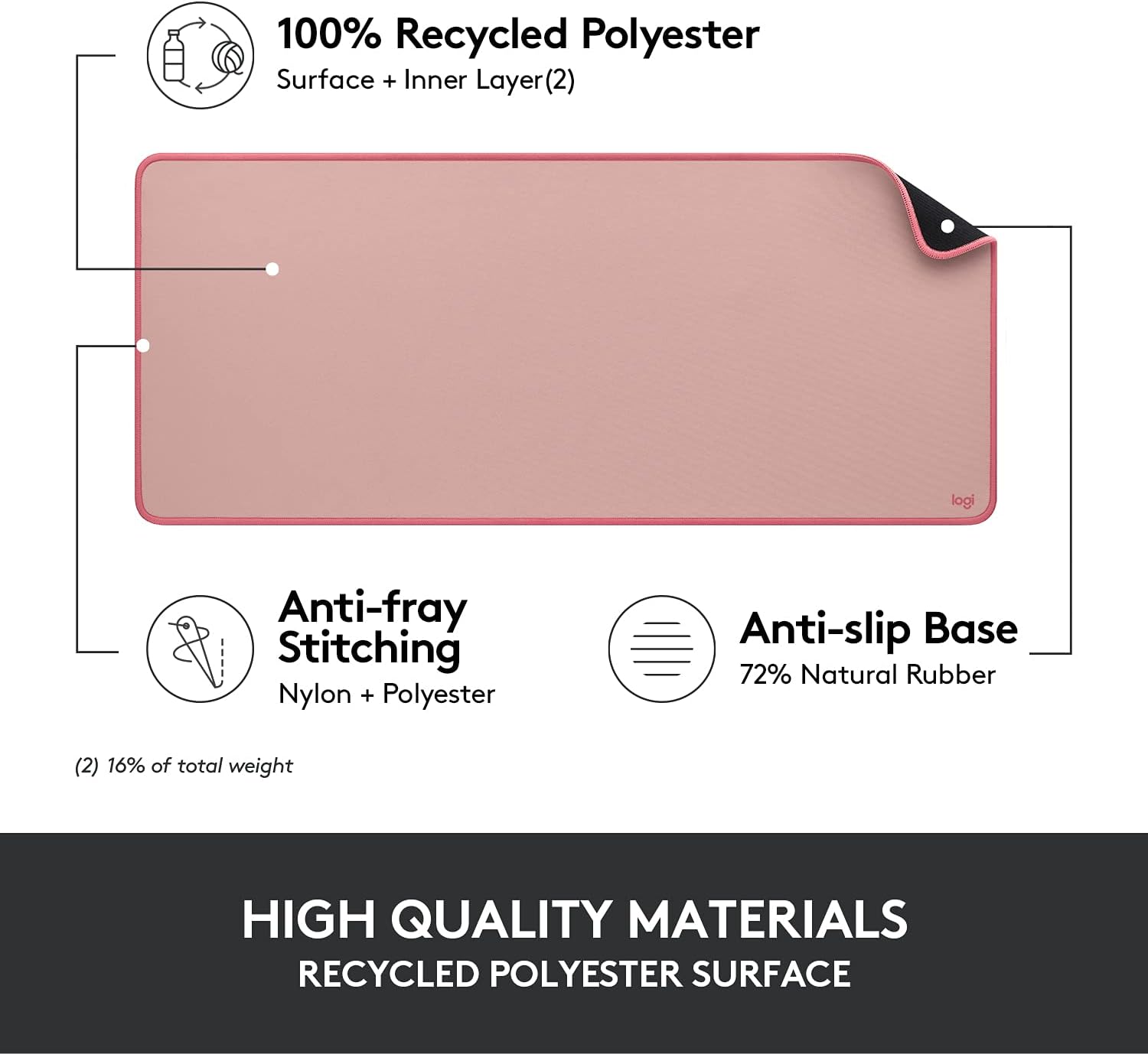 Yes, the desk mat is made with a top layer of recycled polyester and a natural rubber anti-slip base (Office Depot), making it an environmentally friendly choice compared to standard mats. - What are good products to pair with this Logitech accessory?