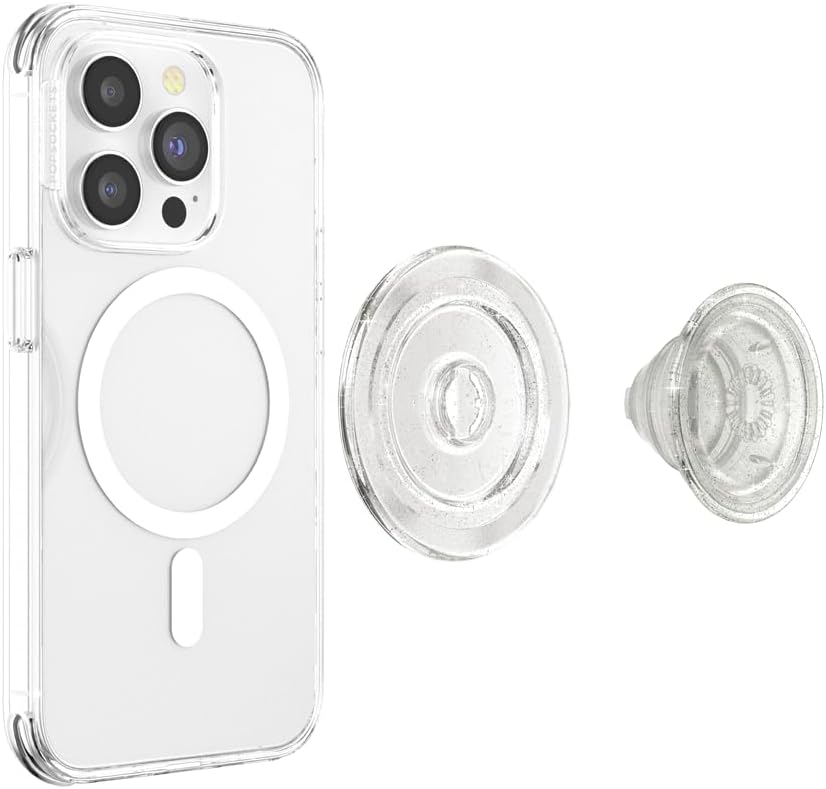 The PopSockets Phone Grip for MagSafe with Kickstand from the PopSockets Store is a versatile accessory designed for iPhone MagSafe cases and more. Its powerful magnetic attachment ensures a secure, one-handed grip and doubles as a handy stand for effortless texting, selfies, and video watching. Easily snap it on or off for quick wireless charging, and enjoy the cute, clear glitter design that suits any style. Upgrade your phone experience with this must-have, swappable PopTop—both stylish and practical.